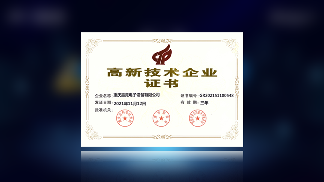 獲得重慶市高新技術企業認定